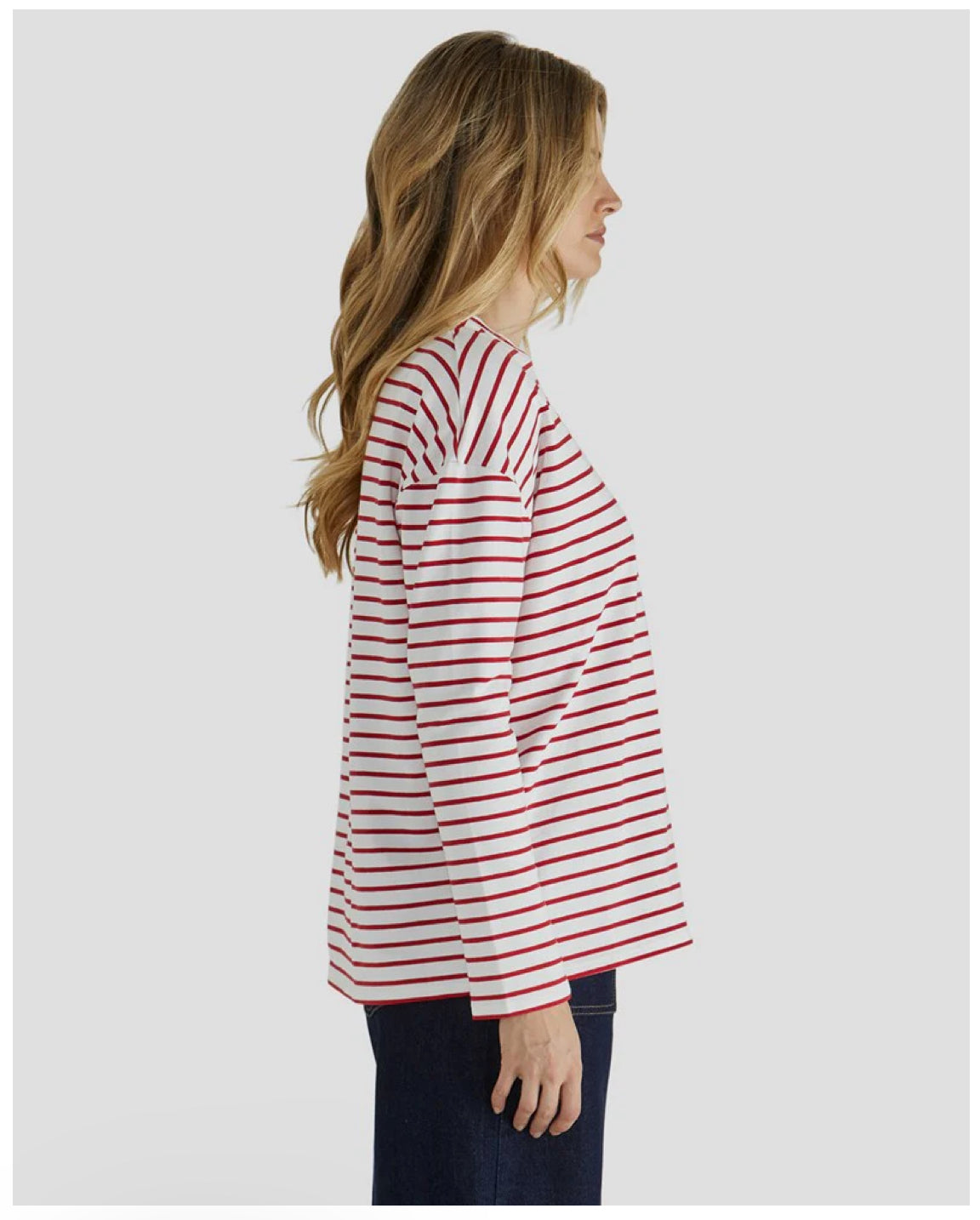 This top is all about playful details with a split sleeve hem and detachable shoulder pads for an elevated touch. Designed in a comfy jersey fabric, it’s your perfect throw-on-and-go piece. The relaxed fit makes it effortless for layering or wearing solo. Whether styled with jeans or tucked into a skirt, it’s a fun and current wardrobe staple!