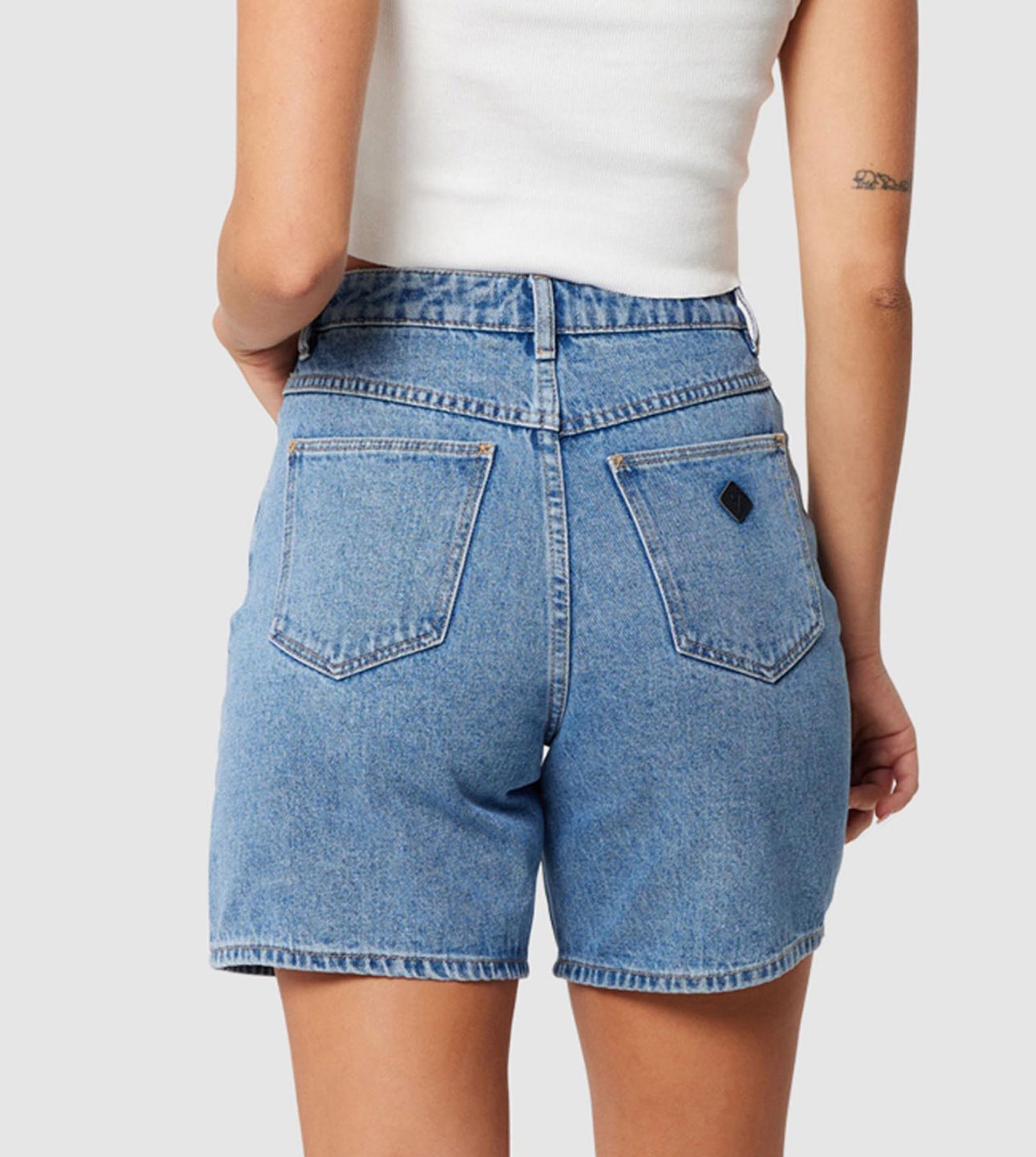 The Carrie Short in Naomi is high waisted, relaxed wide short made with non-stretch rigid denim. Naomi is A 90's Inspired stone wash colourway