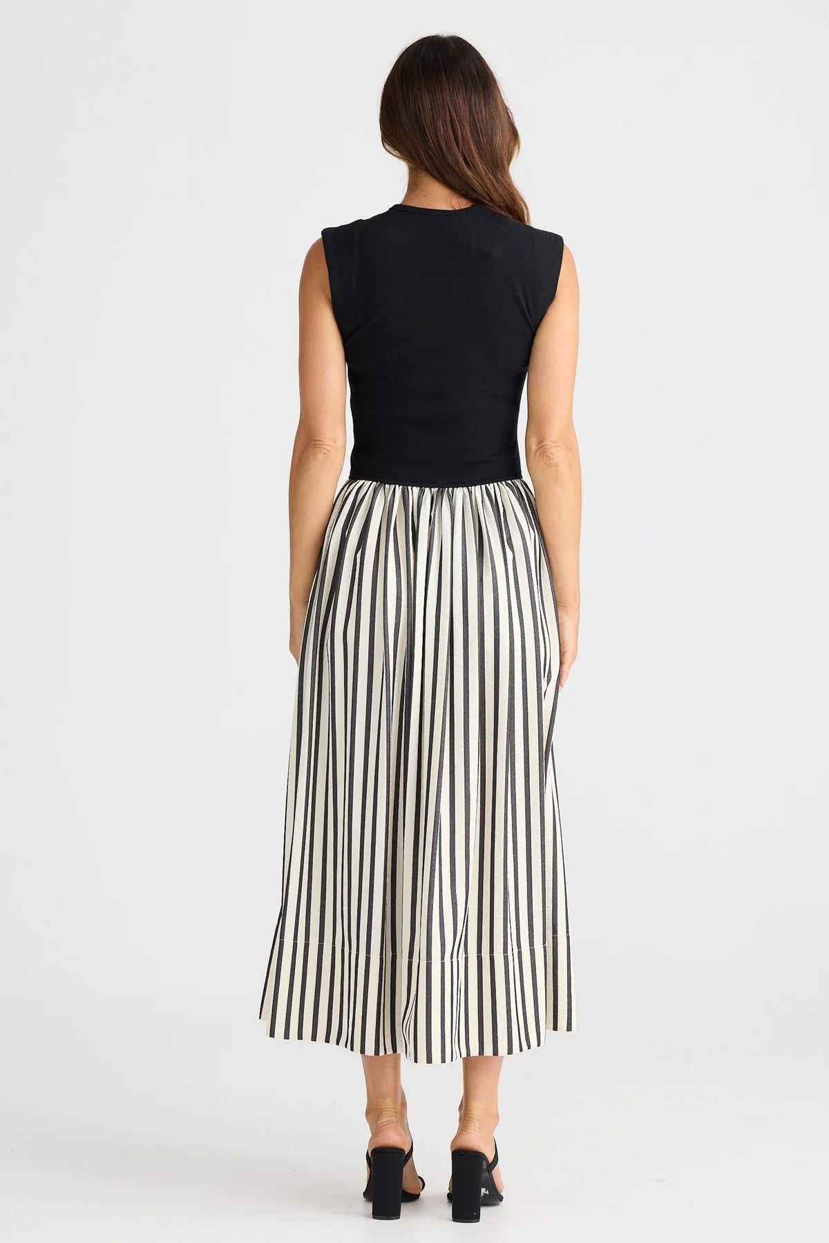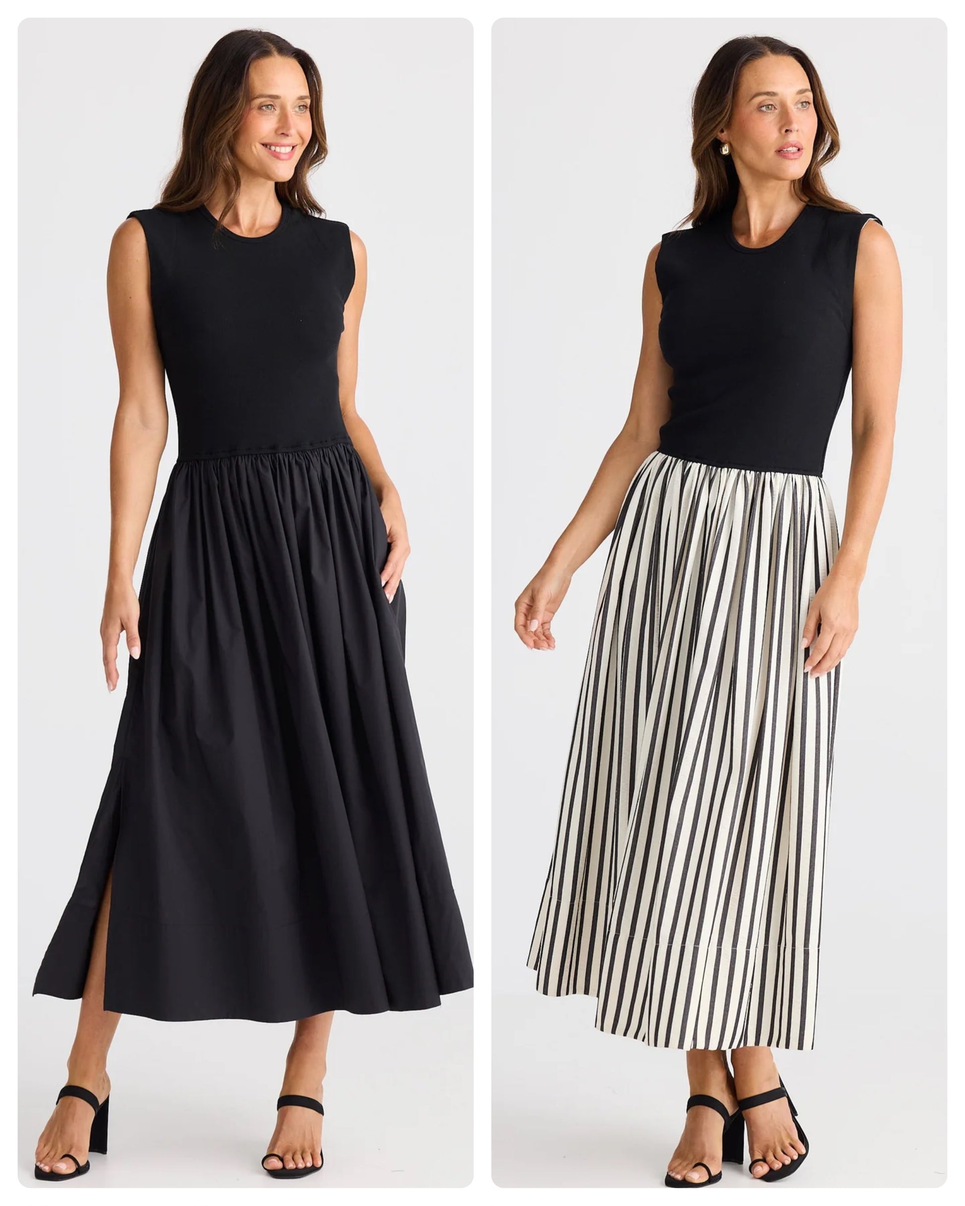 - Jersey rib body and crepe skirt