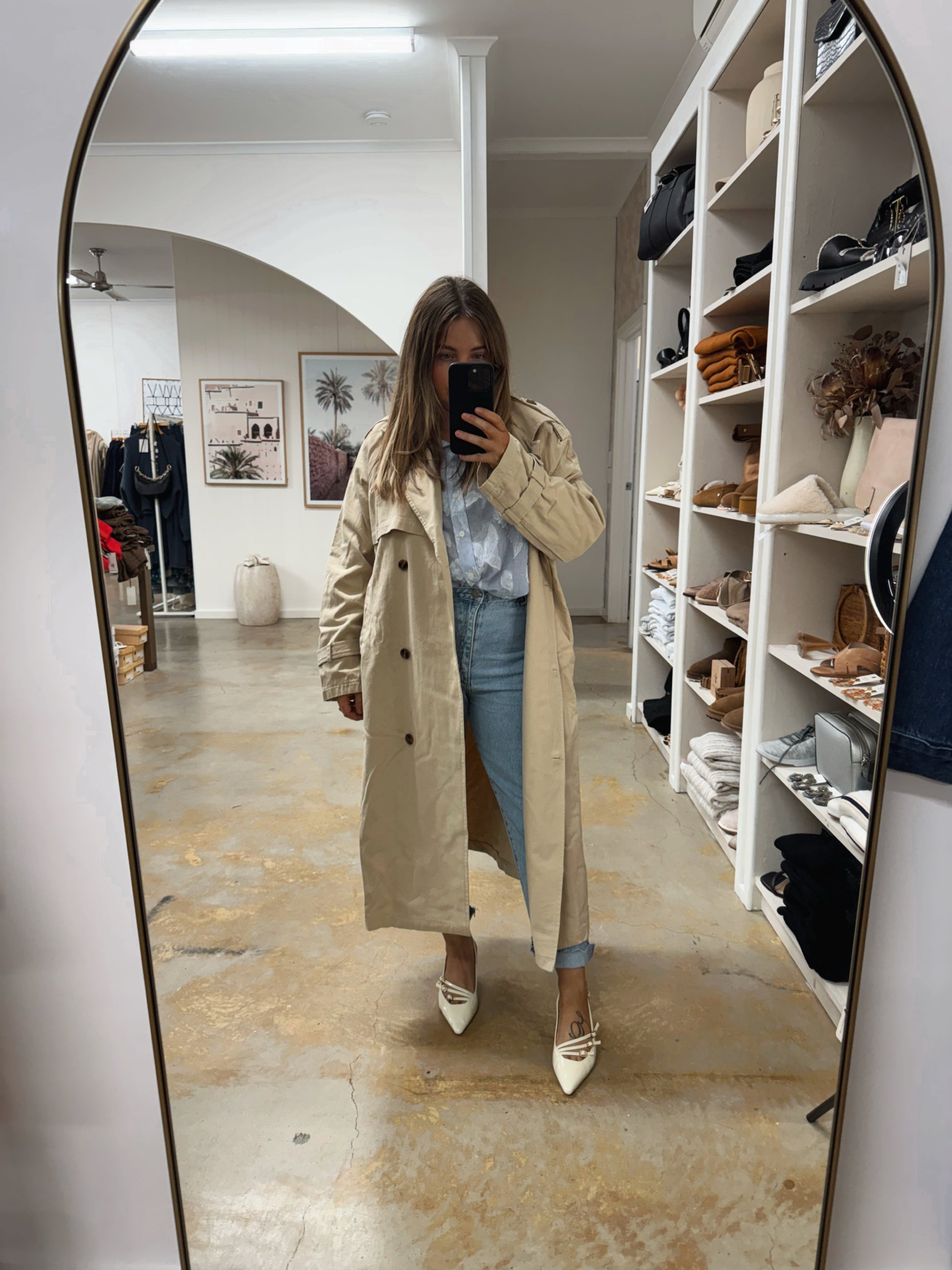 Every wardrobe needs a Trench Coat, and the new Eve Trench Coat is just the piece to complete any outfit. Crafted from 100% cotton , featuring a full length fit with traditional trench coat styling this on trend trench will look great layered over any outfit.