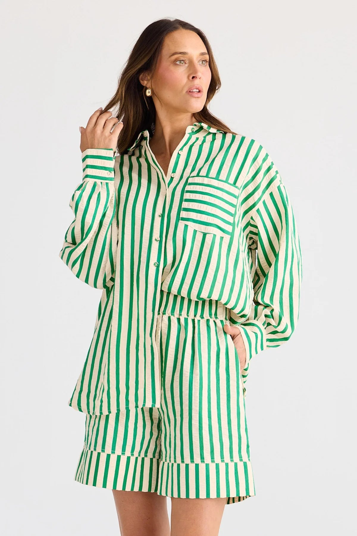 - Lightweight stripe seersucker fabrication