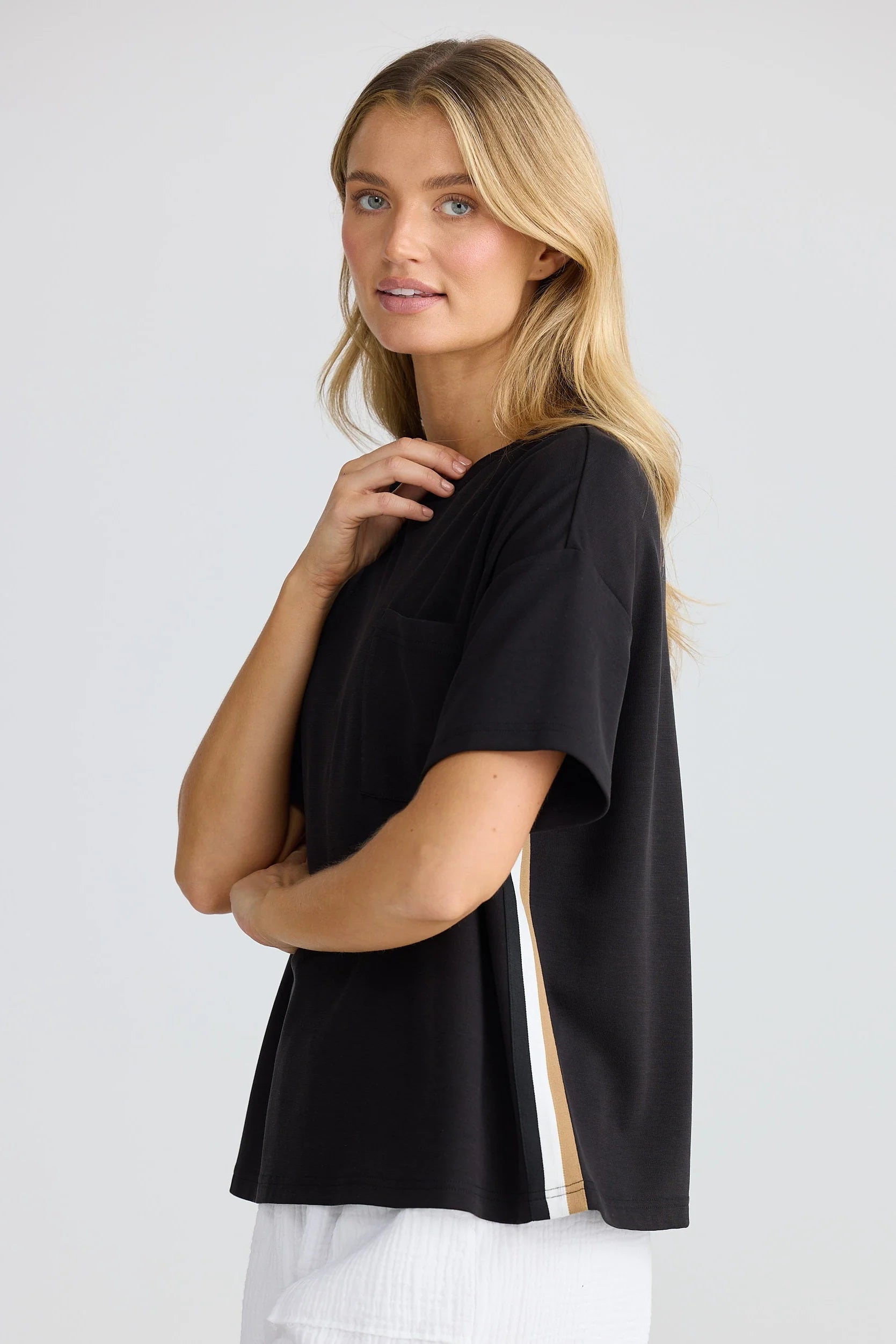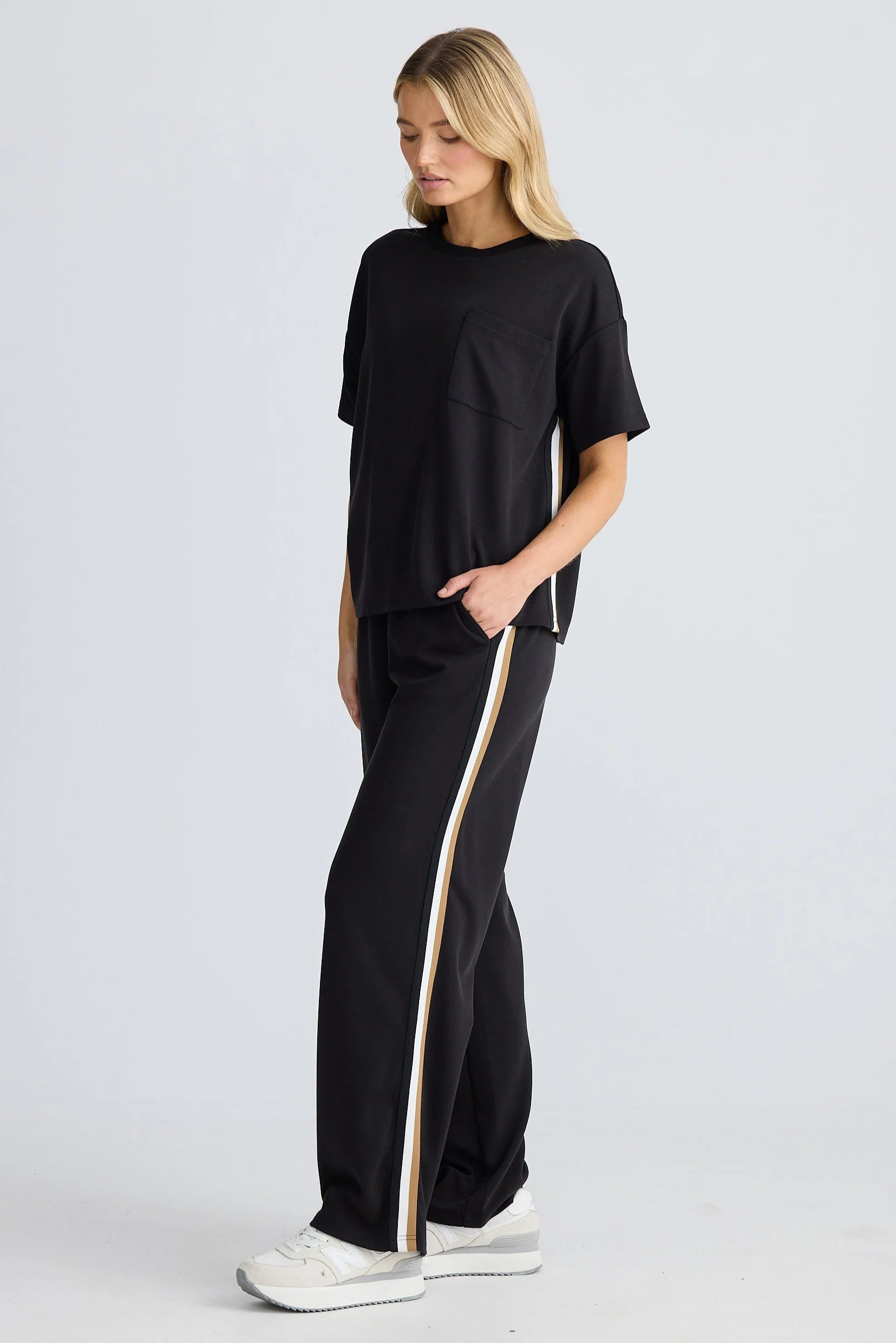 - Stripe trim detail on sides