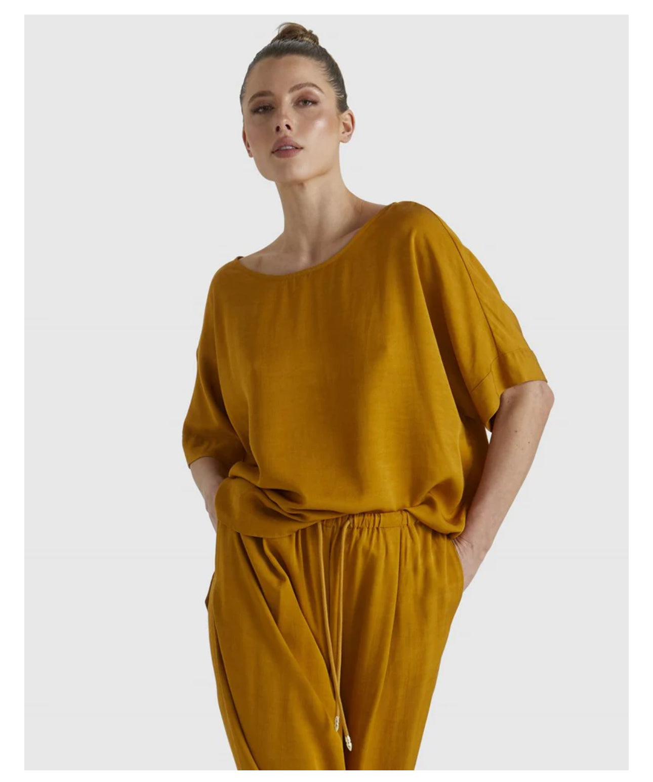 The Fusion Top exudes contemporary charm with its boxy silhouette and wide sleeves. Its unlined design and round neckline make it an on-trend option for those who value effortless sophistication.