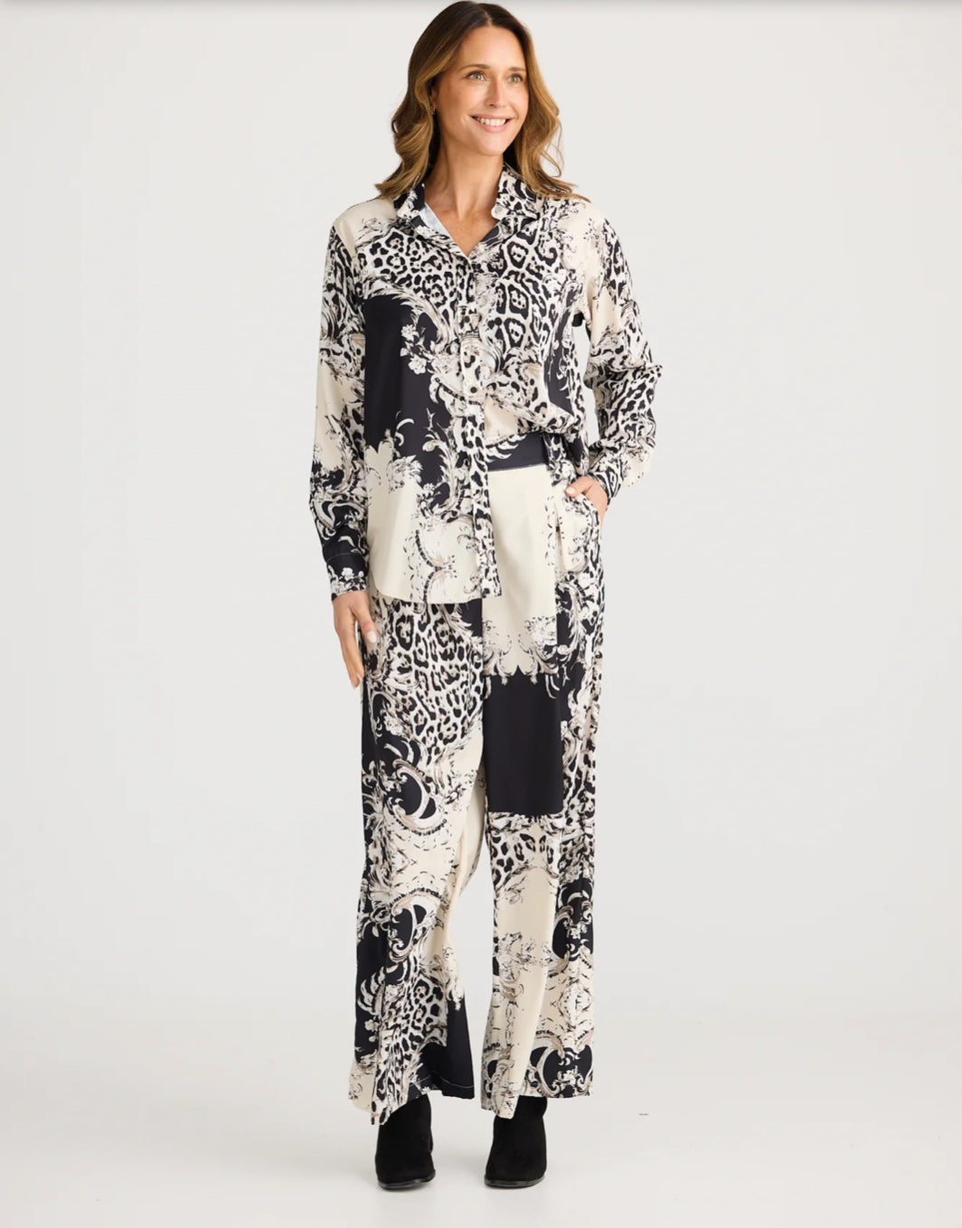 Made from lightweight, breathable fabric, the Hunter Shirt combines comfort and sophistication. Tuck it into high-waisted pants for a polished look, or wear it loose for effortless, everyday chic. This printed long sleeve shirt is a must-have for any wardrobe that values both fashion and function.