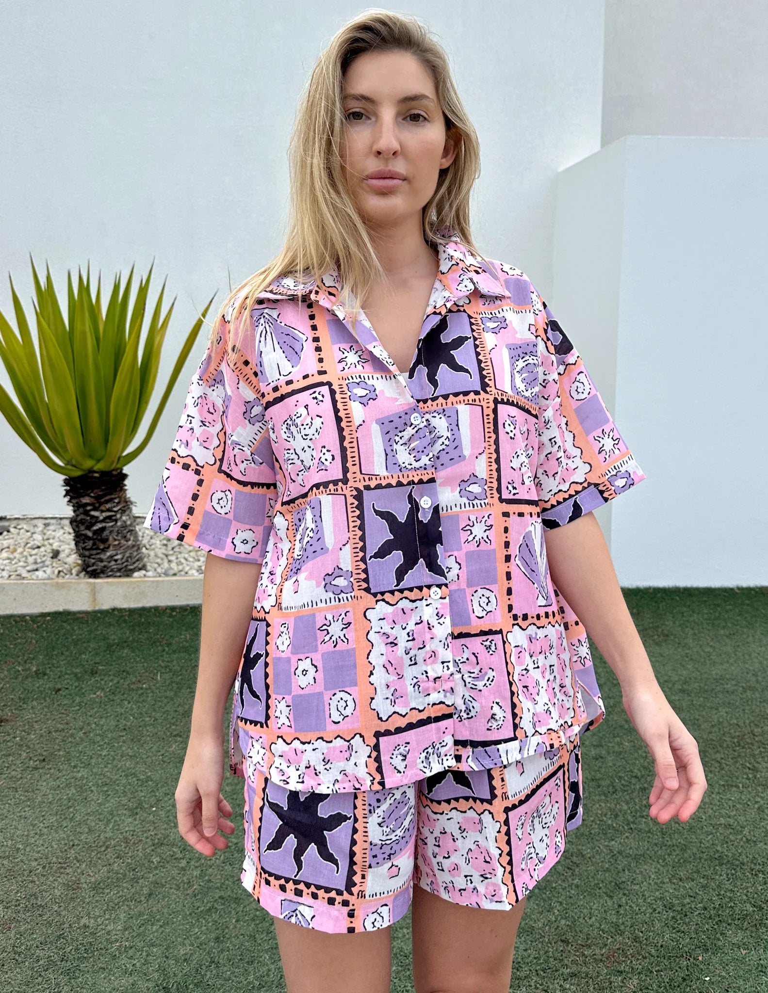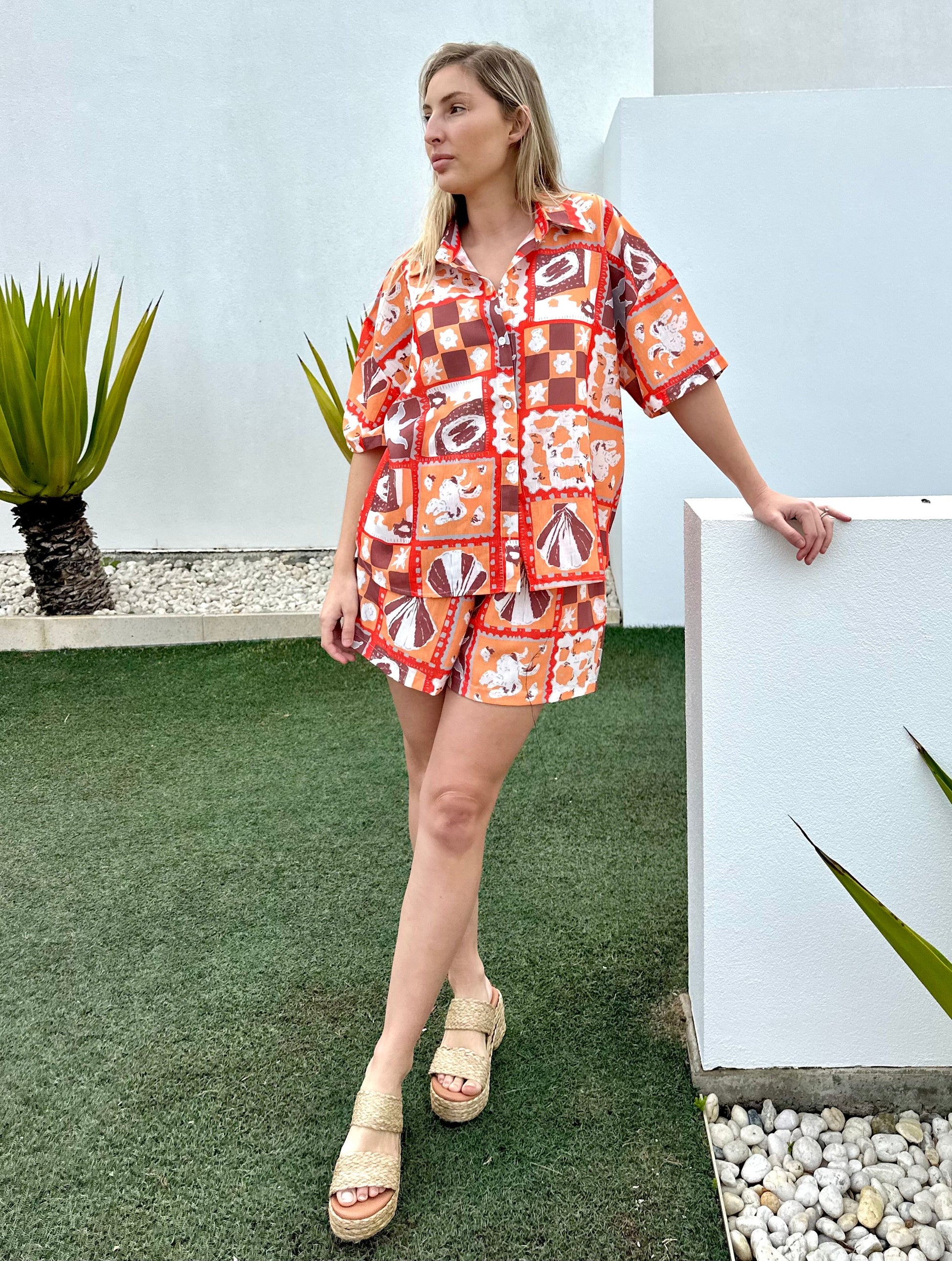 Collared neckline with front button fastening