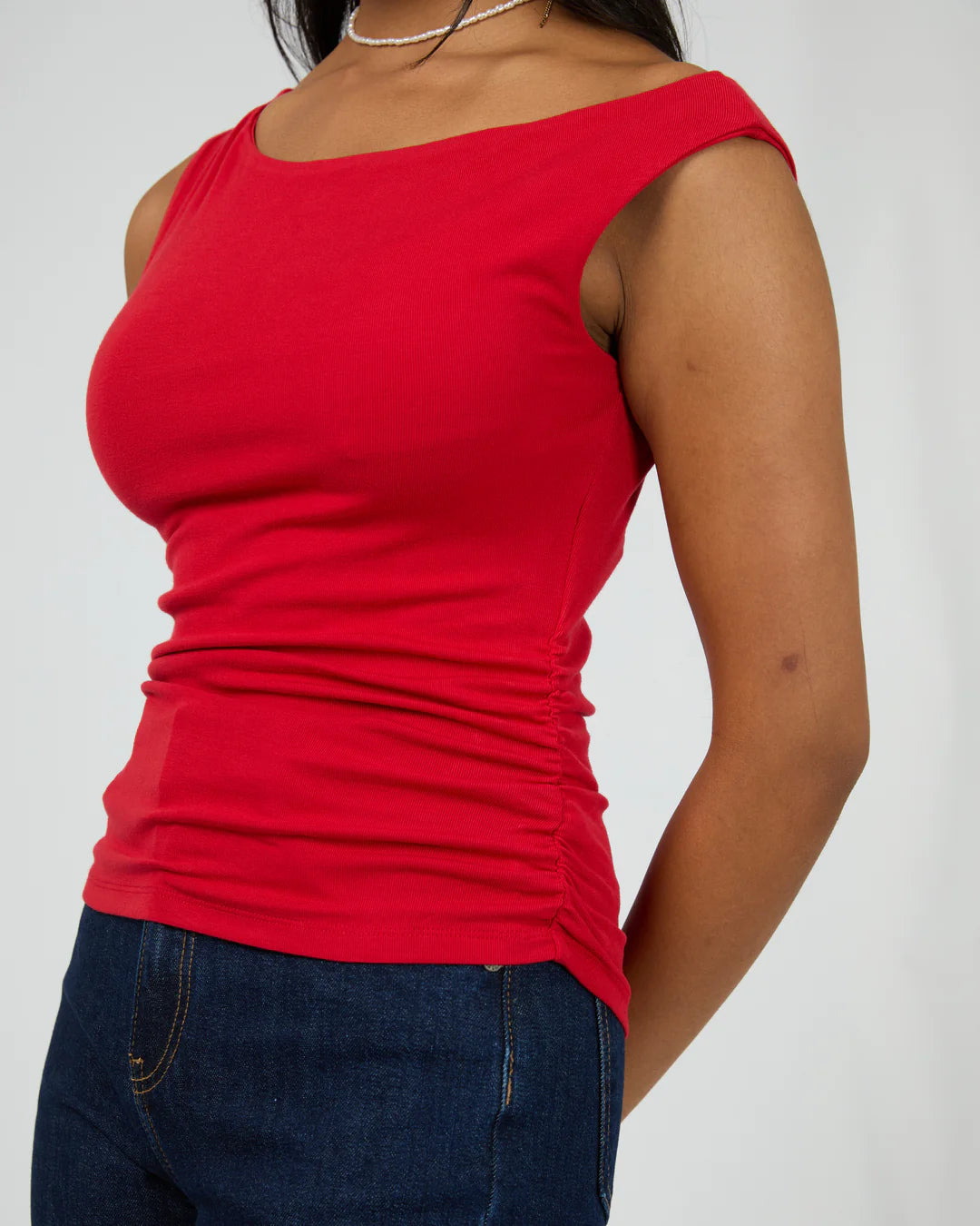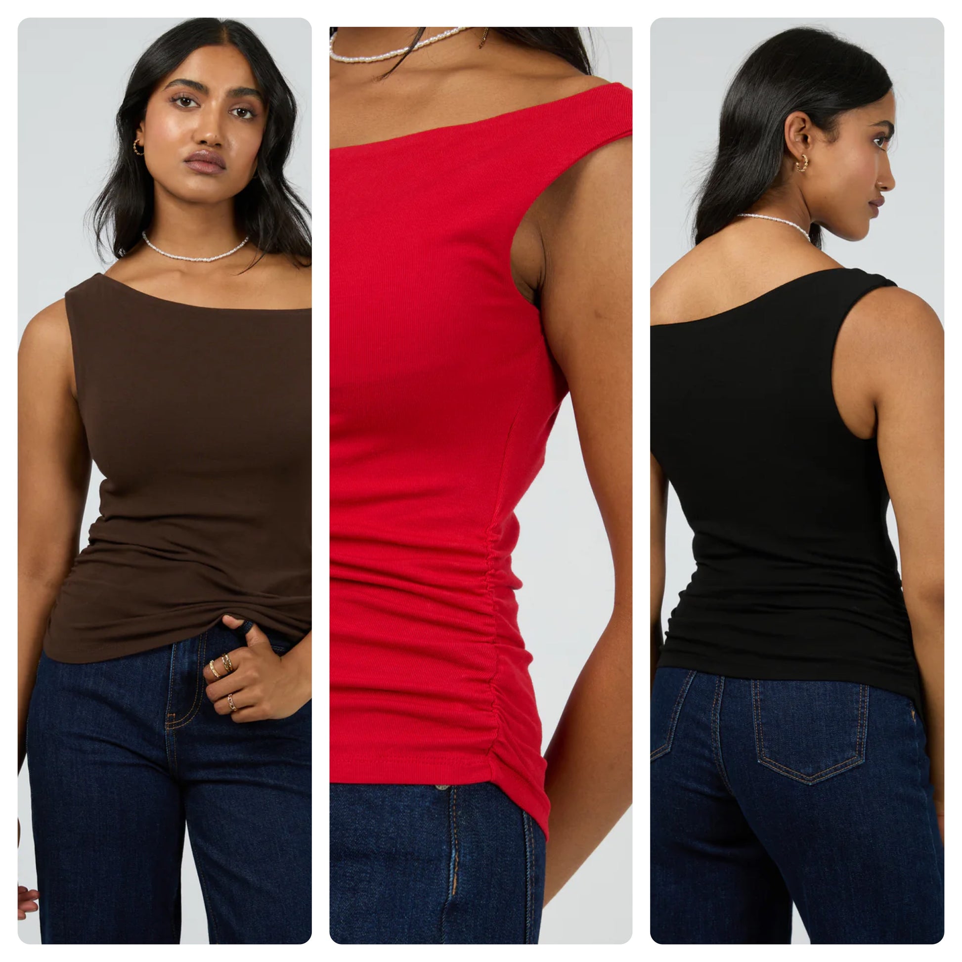 This off-shoulder stretch top combines effortless style with a comfortable fit. Crafted from a soft, stretch fabric, it hugs the body while offering plenty of stretch for a perfect, figure-hugging line. The asymmetric off-the-shoulder design adds a touch of elegance to any outfit. The ruched detail to the side body creates a cute fashion detail. For a dressier look, pair back with skirts or for something more casual back with jeans. Available in versatile neutral colours, our Kylie top is a must-have addition to any wardrobe.
