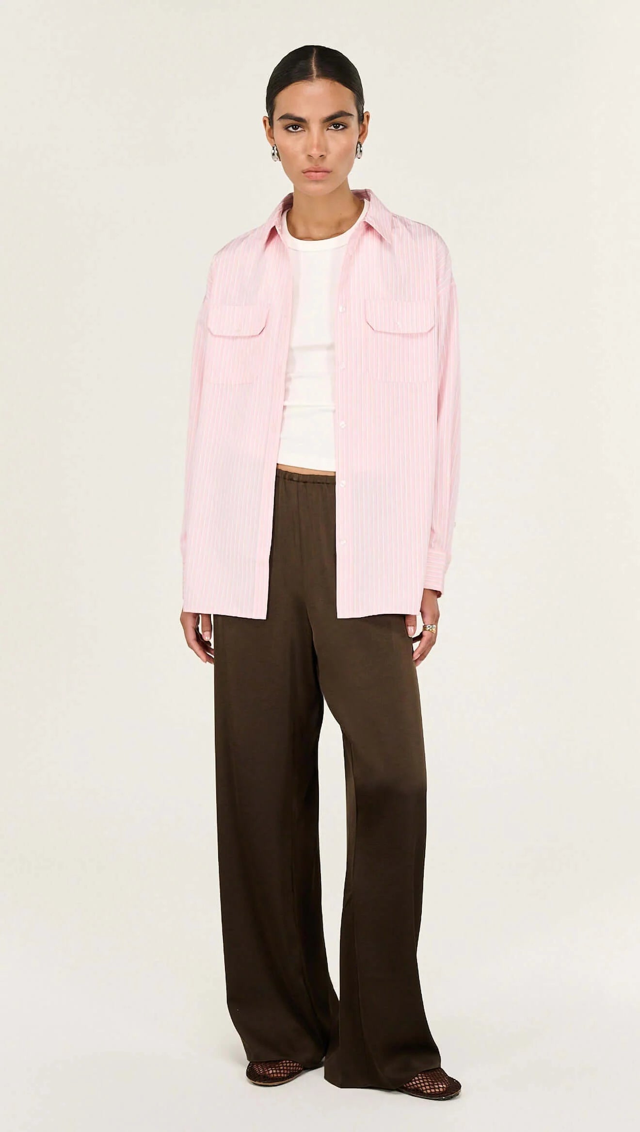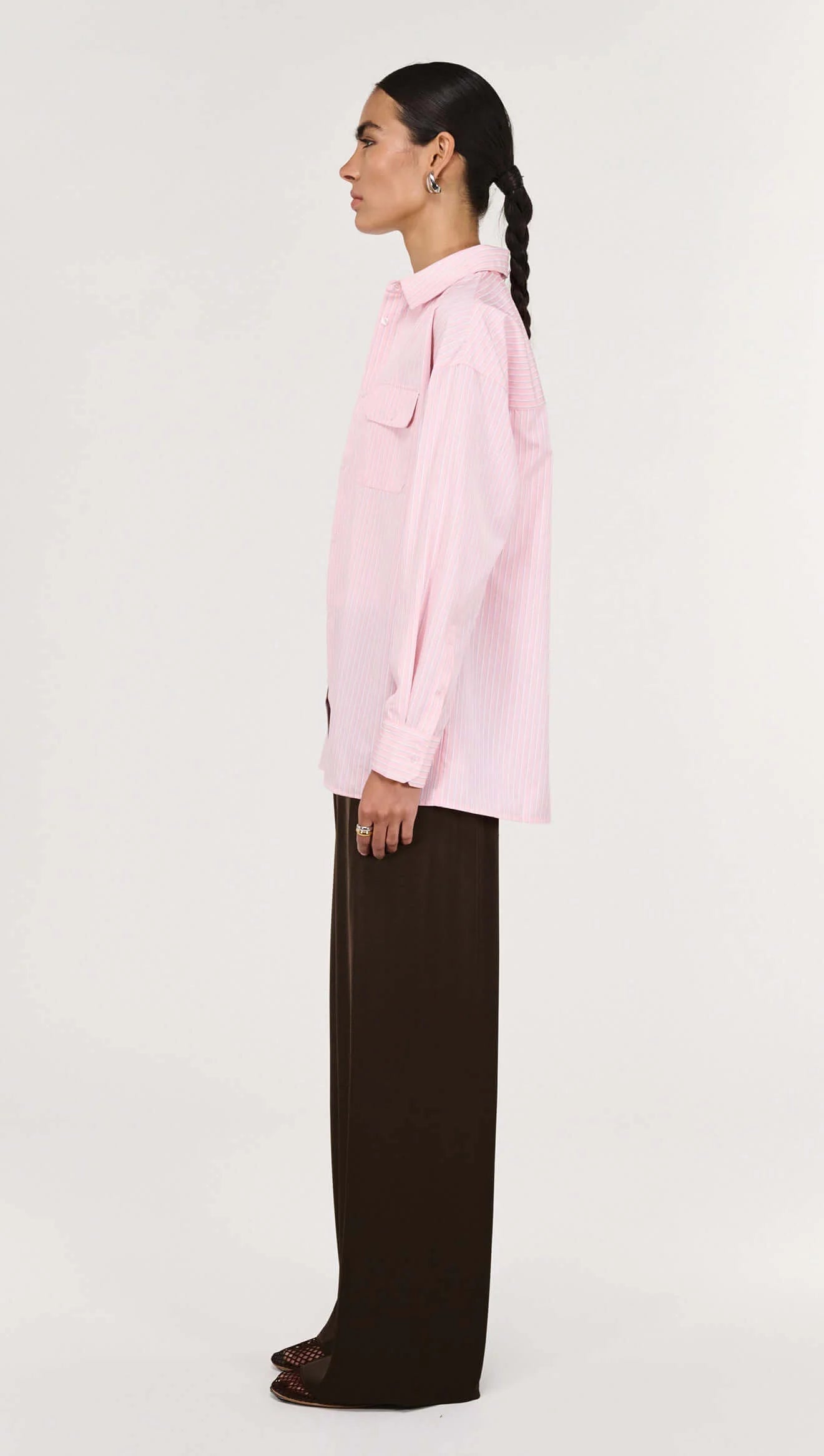 The Lina Pink Pinstriped Shirt is a modern wardrobe essential designed with a relaxed silhouette and timeless shirting details for effortless everyday wear. Crafted from a lightweight woven fabrication, it features a classic collar, button-through front and soft vertical stripe pattern for a polished yet easy finish.