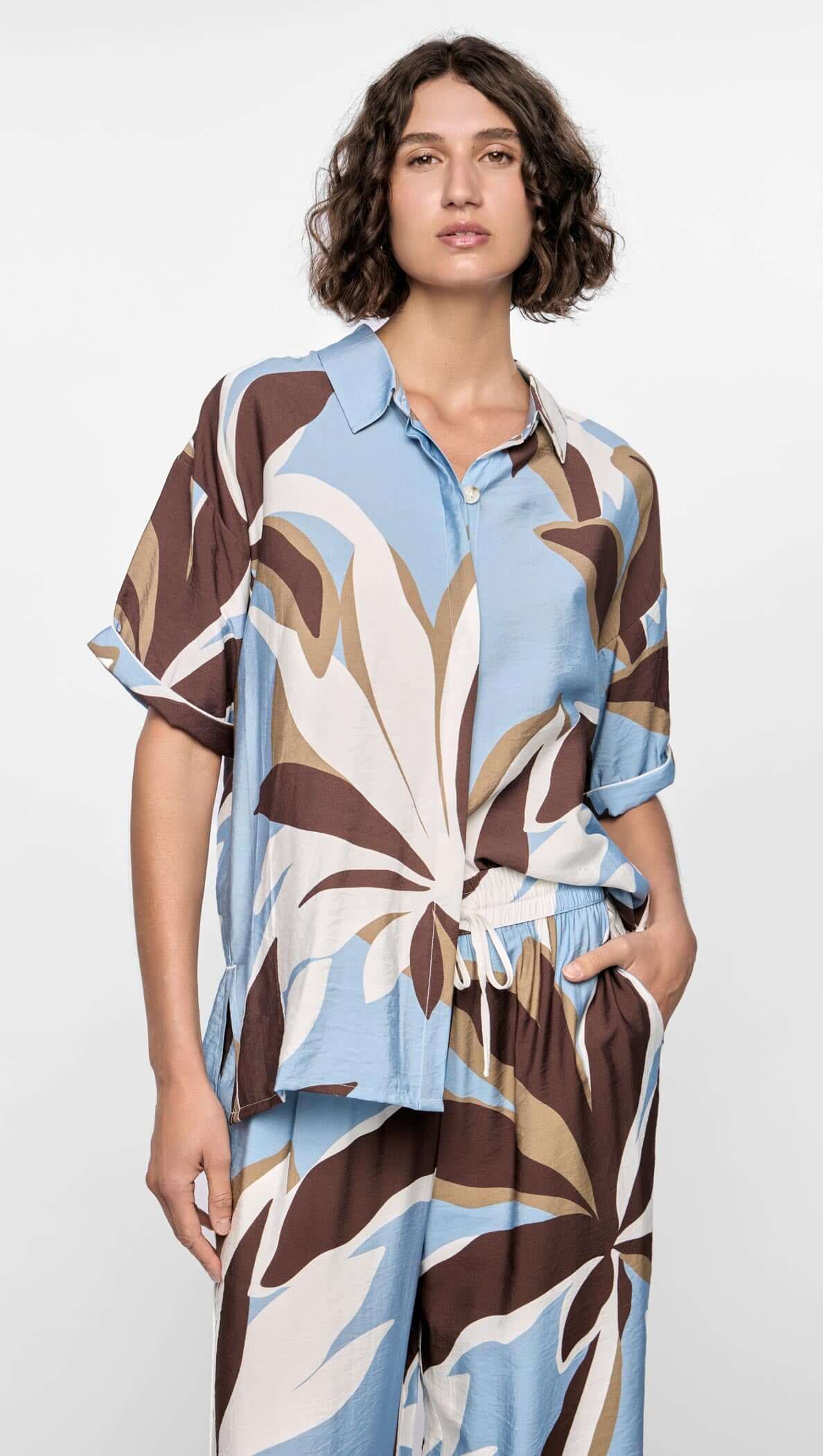 The Maeve Resort Shirt brings vacay vibes to everyday dressing. With its bold abstract print in chocolate, blue, and cream tones, it’s made from a breezy, lightweight fabric that feels as good as it looks. Style it open over a tank or tie it at the waist for a relaxed summer look.