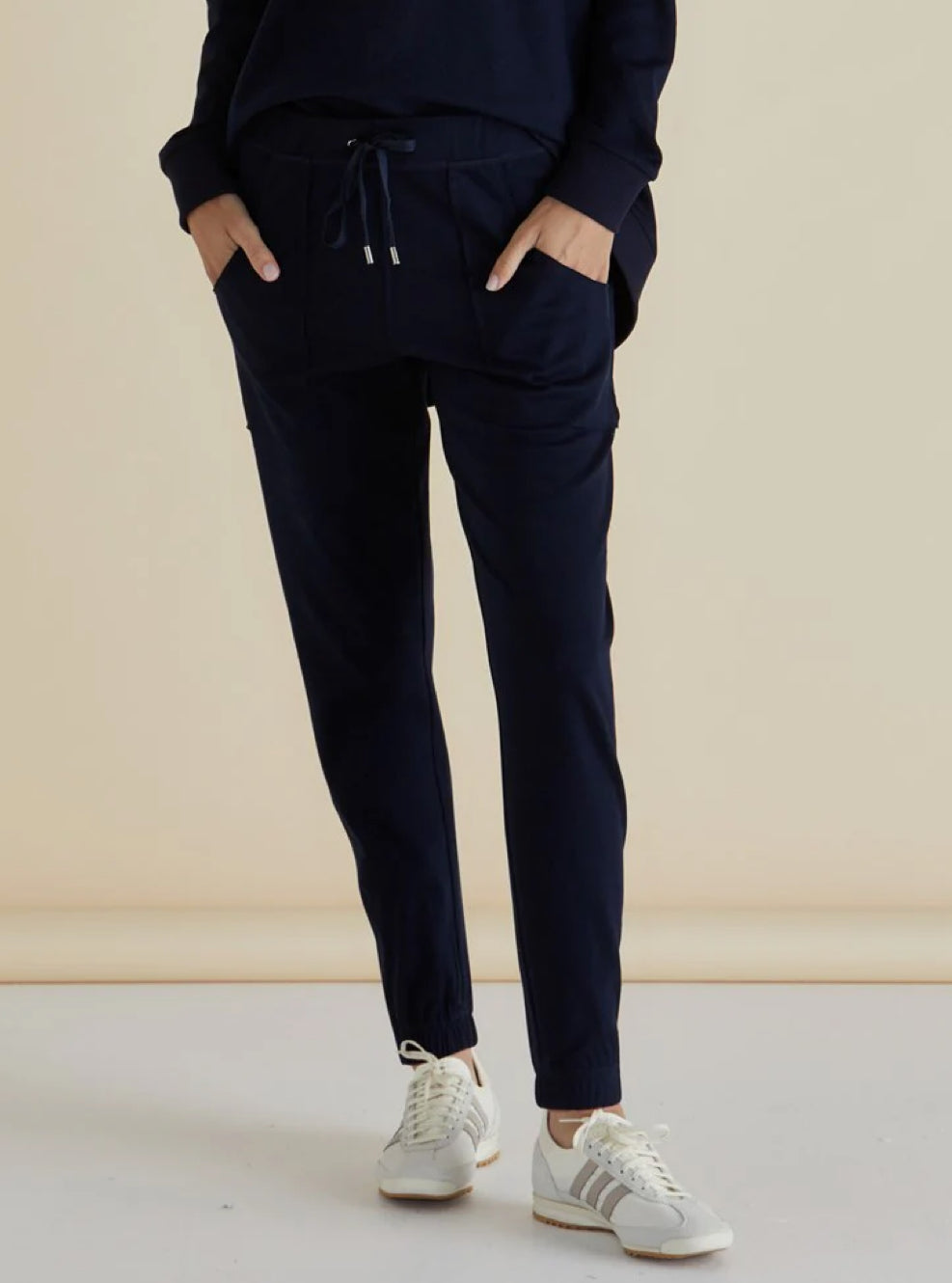 The Noelle Jogger is a relaxed fit jogger made from soft cotton terry fabric. Featuring patch pockets and an elastic waist with an adjustable drawstring, these joggers offer a comfortable, customizable fit. The tapered leg and mid-high rise give them a flattering, relaxed look. Perfect for lounging or casual days out, the Noelle Jogger offers easy style and comfort.
