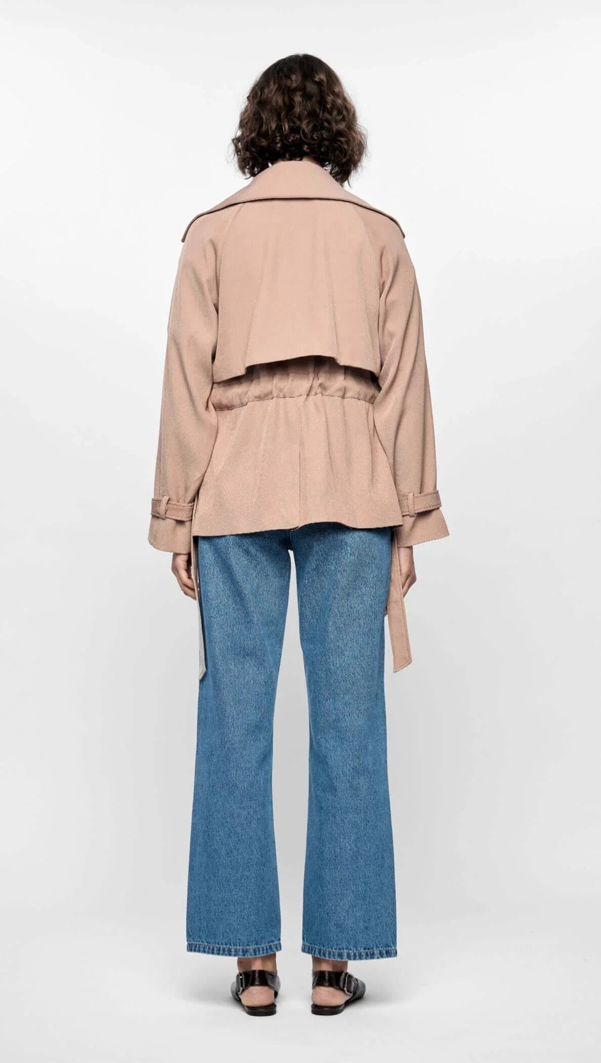 The Olea Crop Tie Waist Coat brings a soft, tailored feel to your trans seasonal wardrobe. Designed with a draped lapel, adjustable waist ties and storm flap detail, it layers effortlessly over denim or suiting while the warm beige tone keeps things neutral.