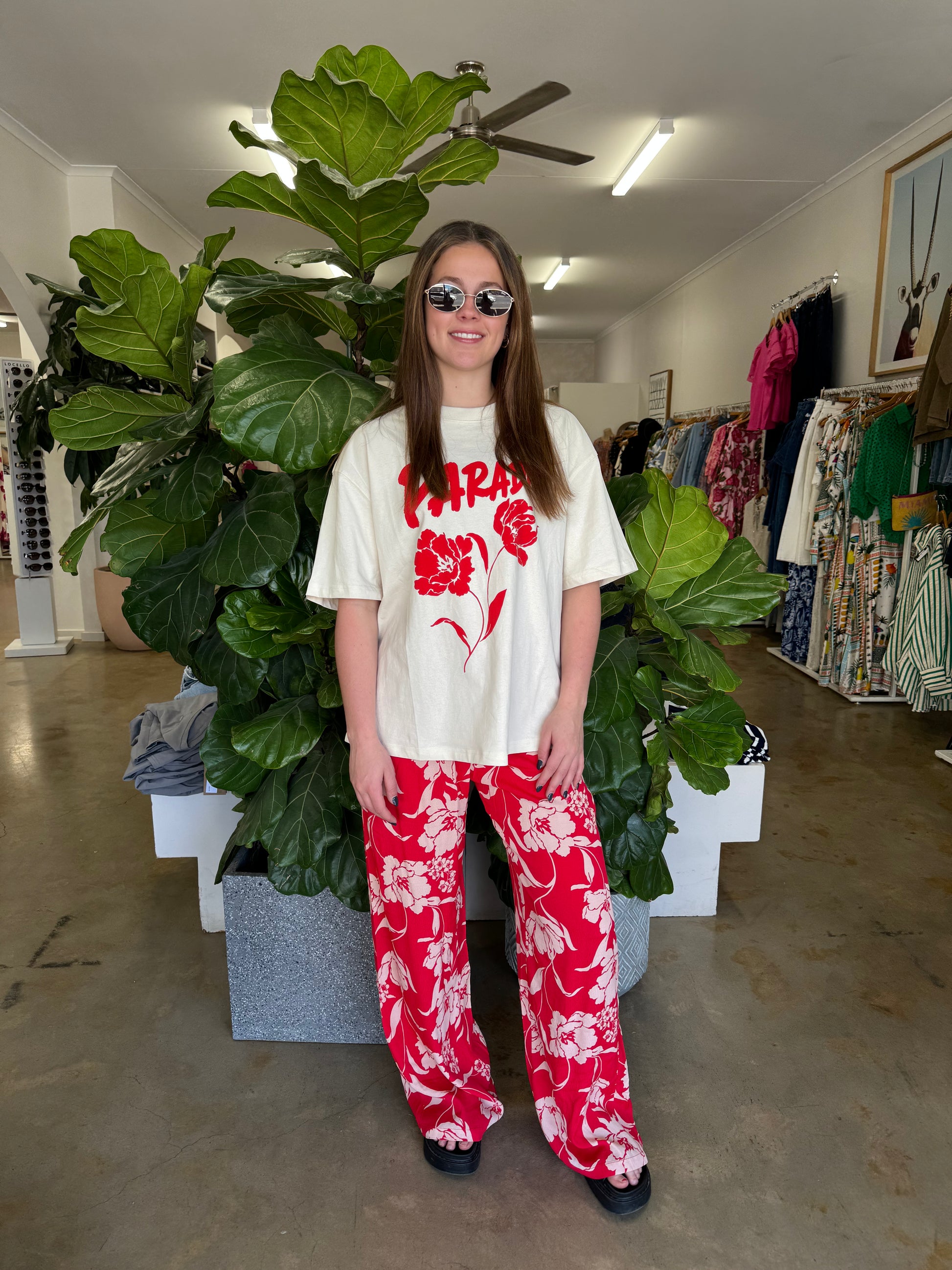 The Poppy Pants bring relaxed tailoring to your summer wardrobe. Designed in the same standout red floral print, they feature a flattering high waist and wide leg fit that elongates the silhouette. Wear them solo or as a co-ord with the matching top for an easy, breezy style.