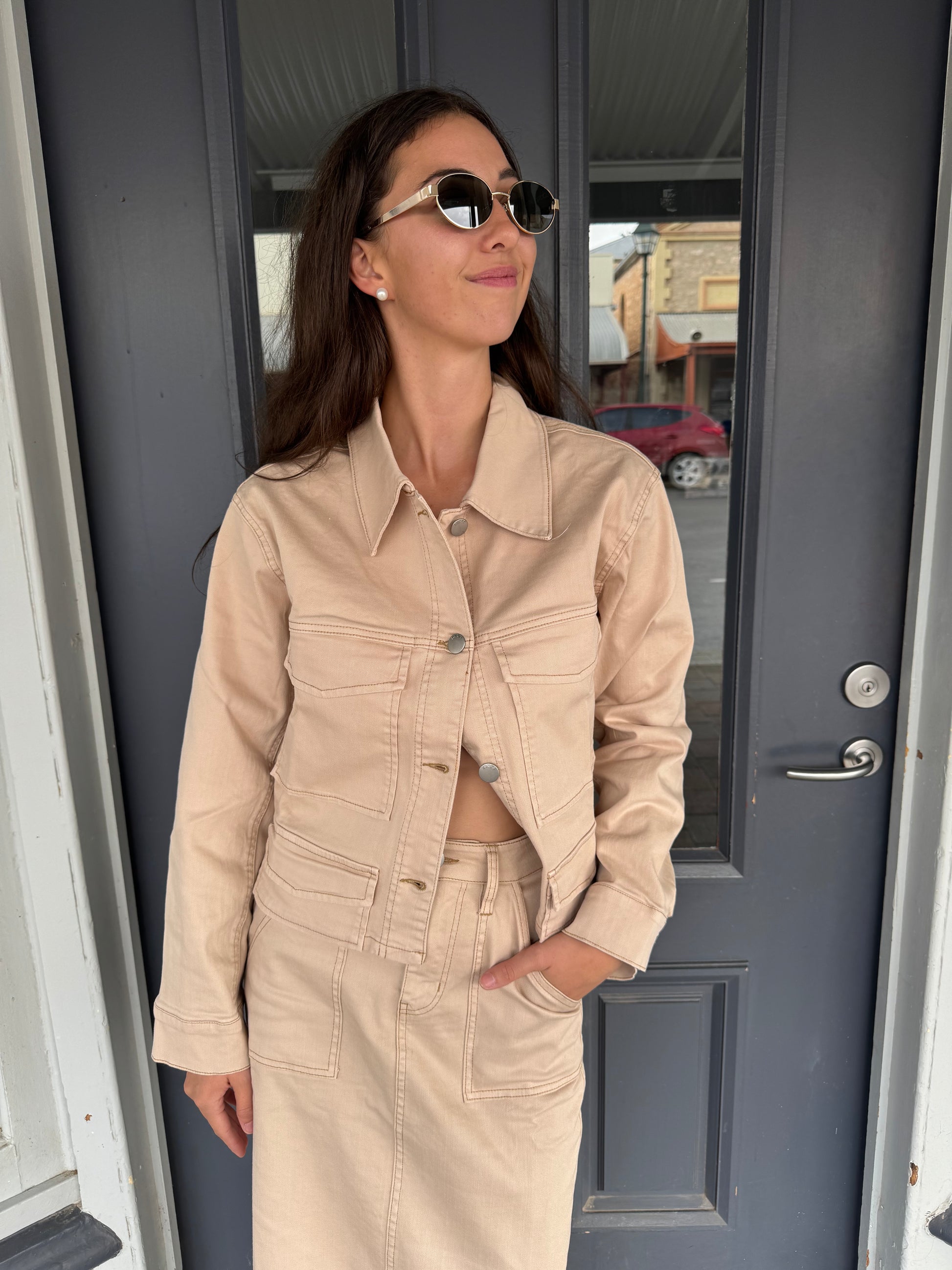 The Reece Jacket is the ultimate cool-girl staple, with a cropped fit that pairs effortlessly with everything. Designed with double pocket details and a metal button opening, it’s a fresh take on classic denim. The slight stretch keeps it comfy, while the structured shape keeps it on-trend. Throw it on over a dress or style it with your fave jeans for an effortless, everyday vibe!