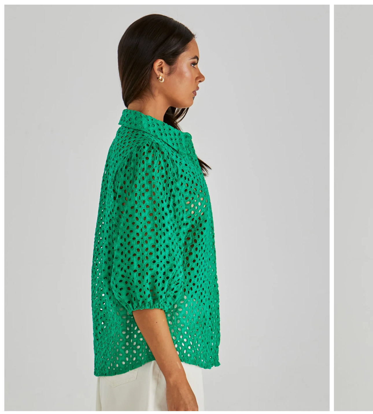 The Steva Shirt brings all the charm with broderie details and a puff sleeve. It’s unlined and lightweight—perfect for keeping things cool while still looking elevated. Throw it on with denim for instant style.