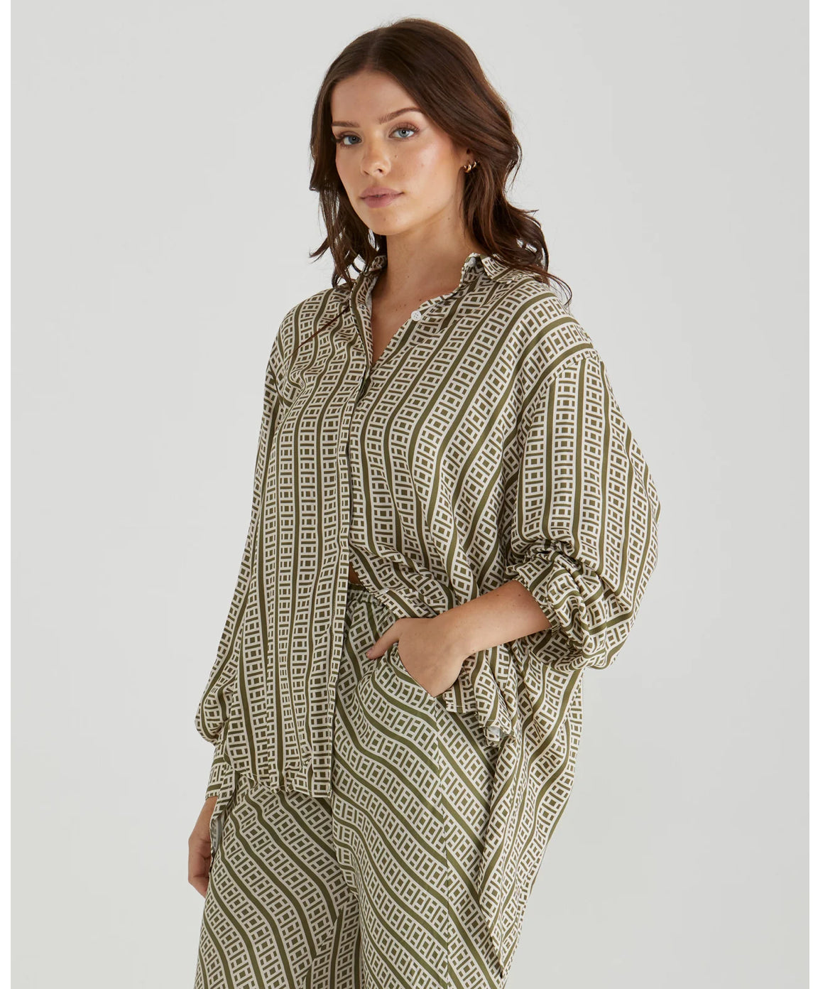 The Sullivan Shirt is a contemporary wardrobe essential. With a concealed button opening, exaggerated back hem, and soft drapey fabric, this relaxed-fit shirt is a versatile piece that can be styled effortlessly for casual or professional looks.
