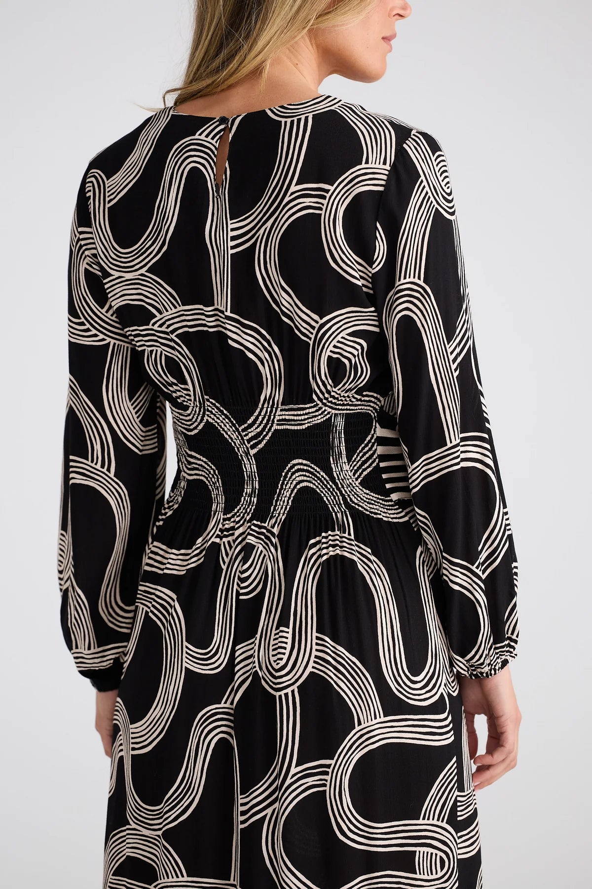 The Turning Point LS Dress is a modern midi silhouette designed with comfort and versatility in mind. Featuring a classic round neckline and a relaxed fit through the body, this style is balanced by a shirred back panel that allows for ease of movement and a flexible fit. Adjustable waist ties at the sides offer subtle shape definition, while side hem splits enhance fluidity and everyday wearability. An effortless piece that transitions easily from daytime styling to elevated occasions.