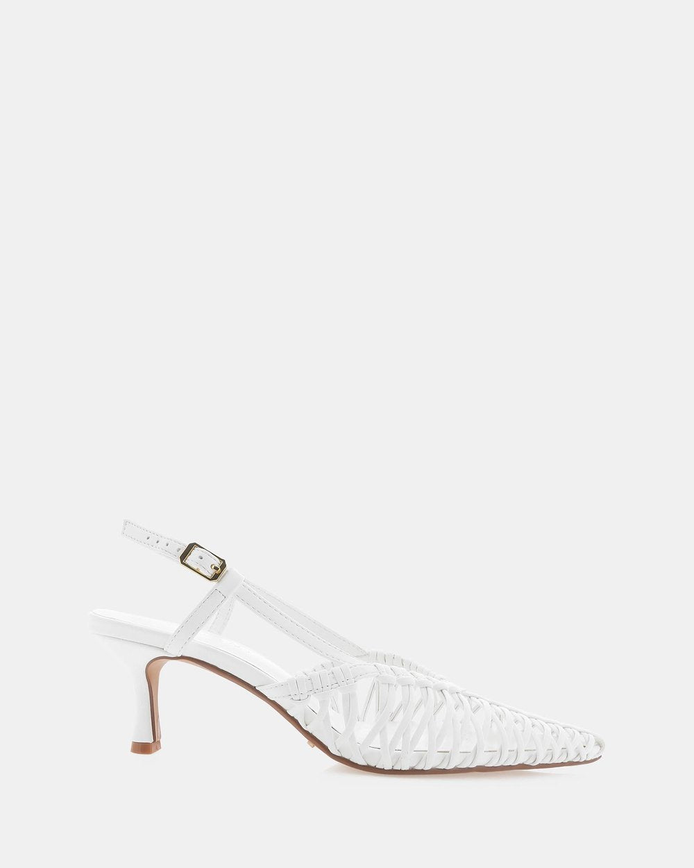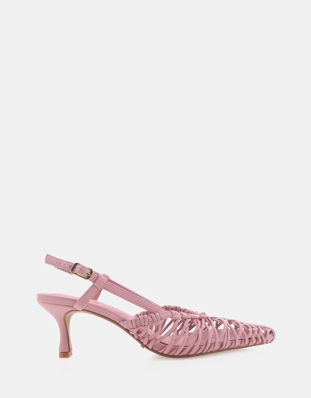 - sling back ankle strap with adjustable buckle fastening in gold hardware